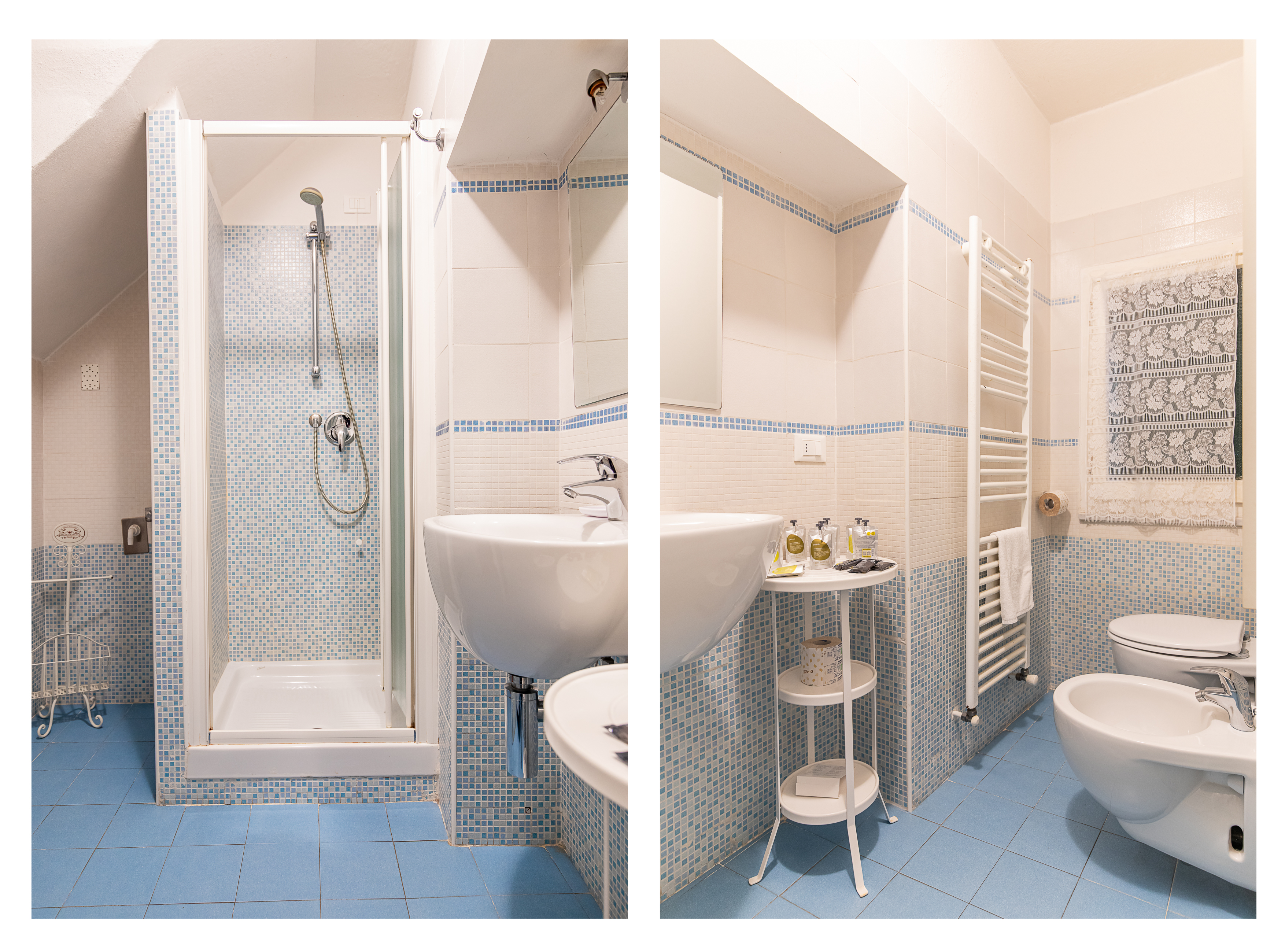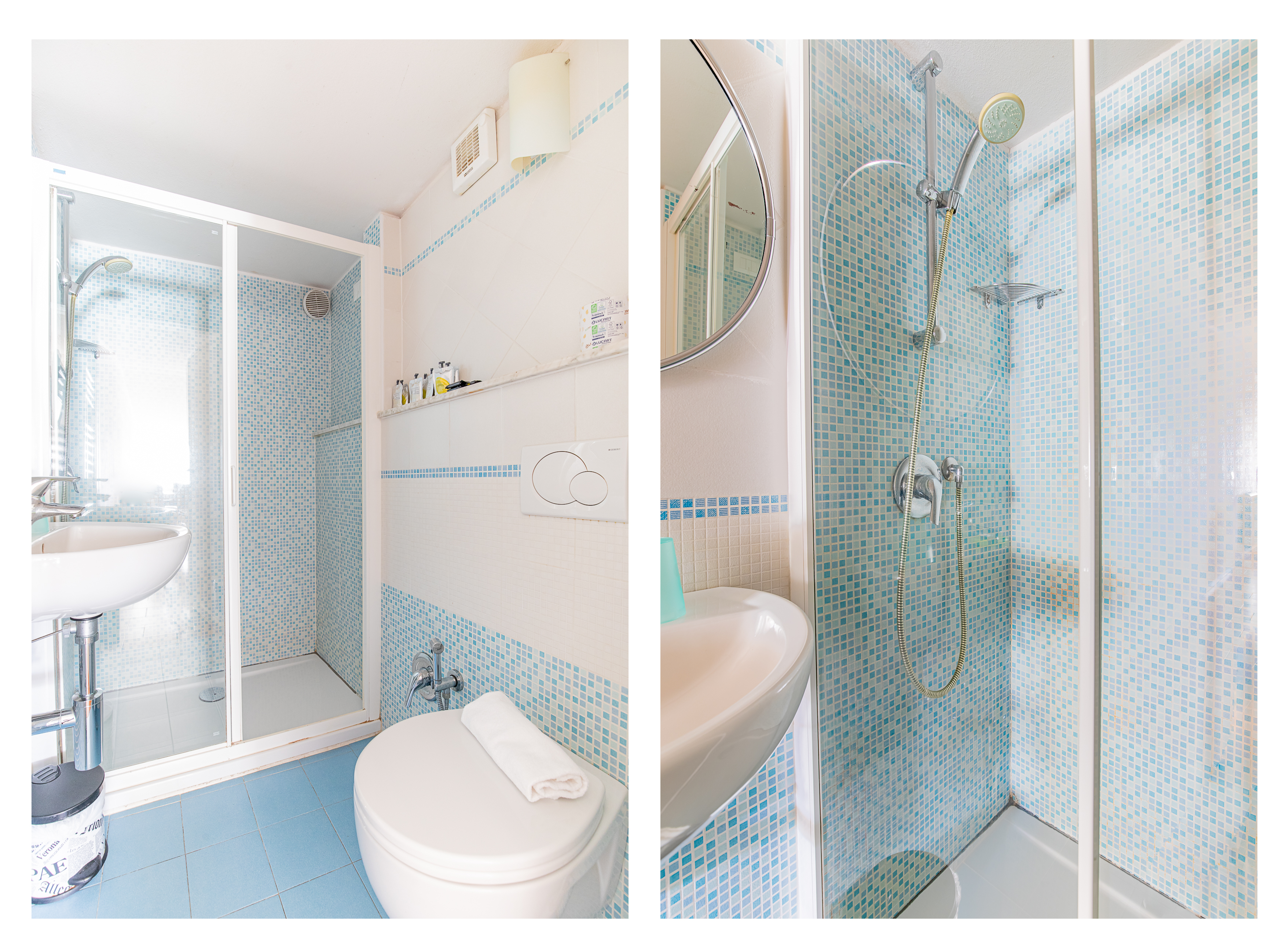 La camera è dotata di ampio bagno privato con una grande doccia, asciugacapelli da muro, frigobar ...