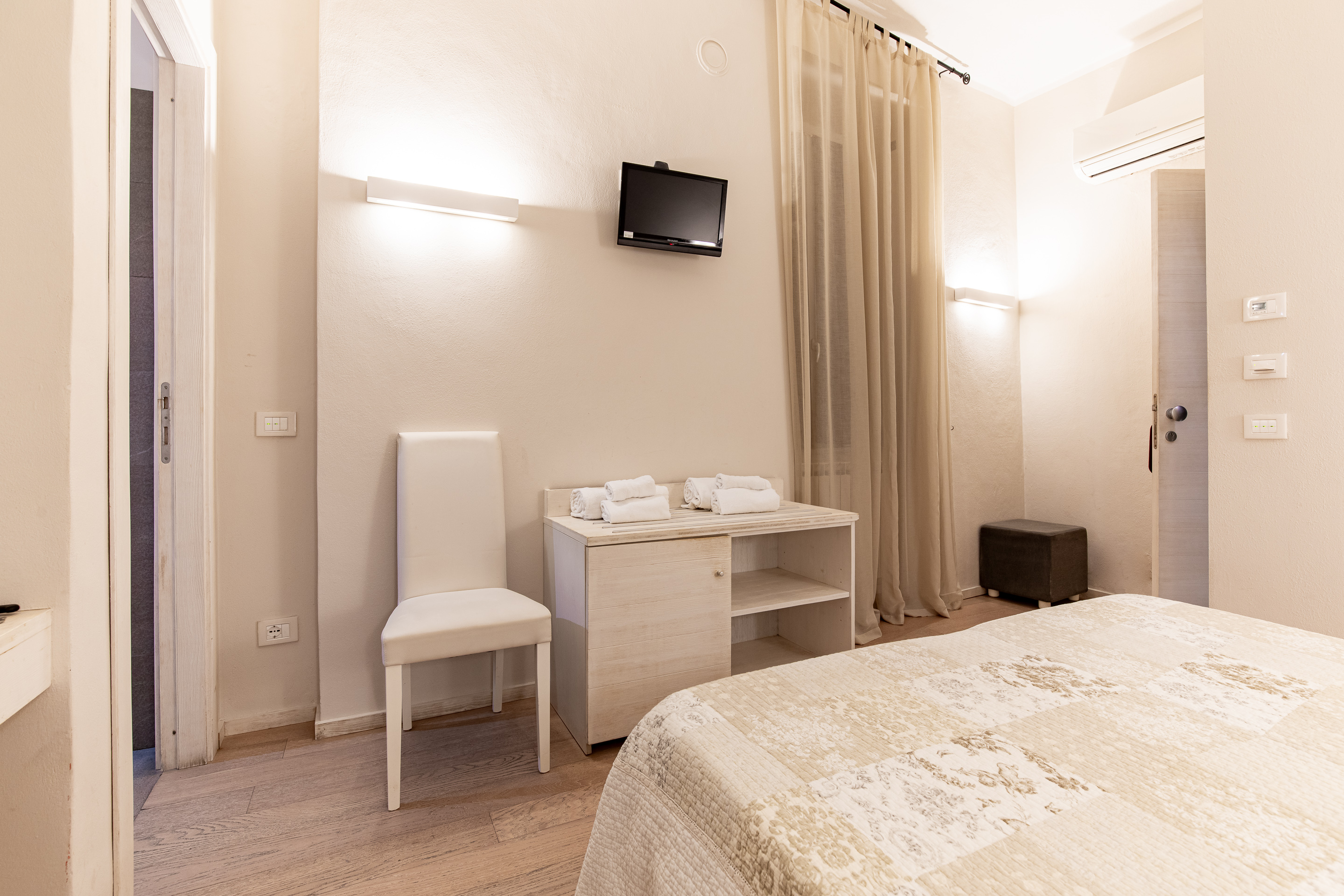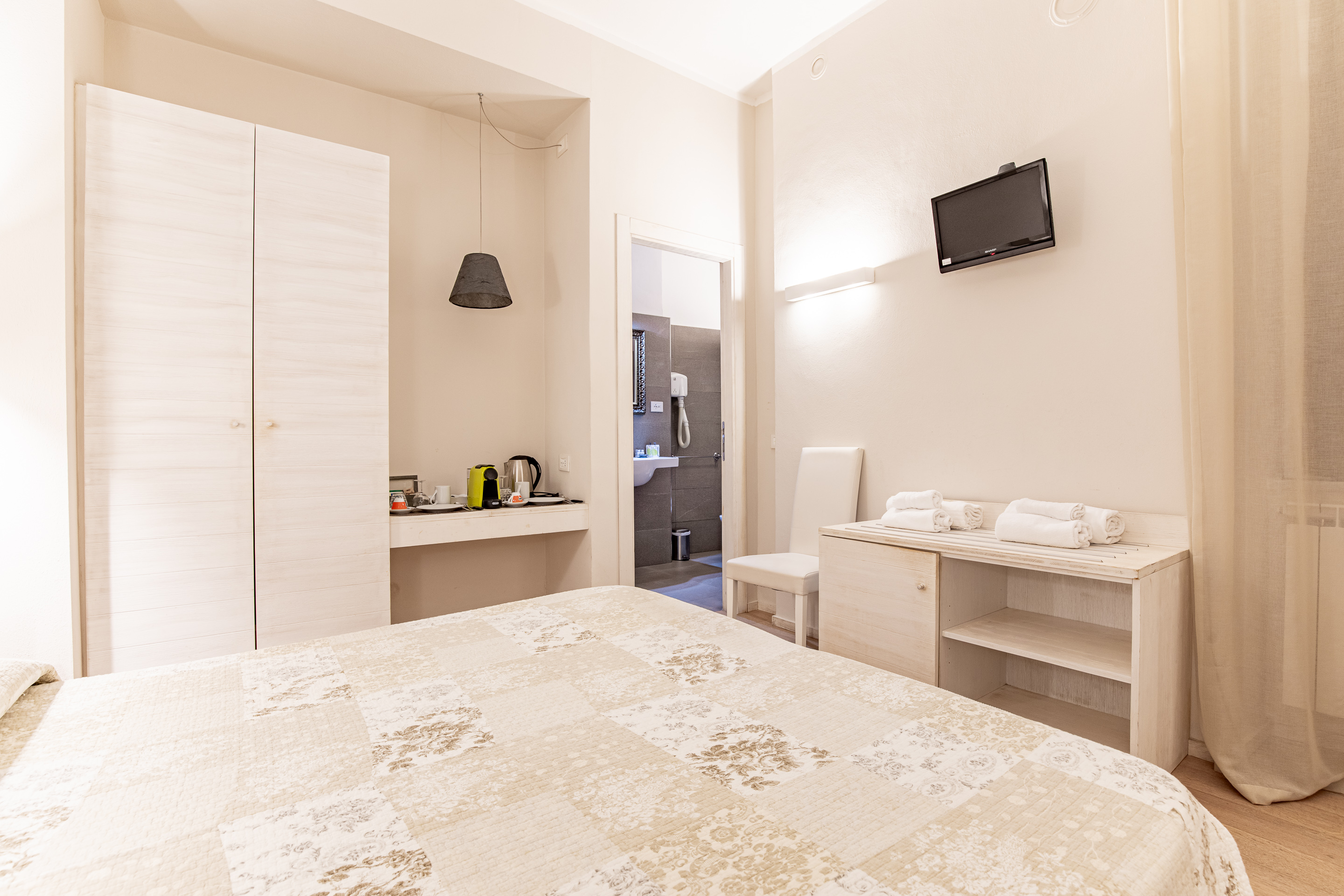 La camera è dotata di ampio bagno privato con una grande doccia, asciugacapelli da muro, frigobar, cassetta di sicurezza, TV LCD, poggia borse, armadio e scrivania. E' l'ideale per una coppia appassionata di trekking che non vuole rinunciare a tutte le comodità. La camera supera i 13 mq, la pavimentazione è in parquet e il mobilio è nuovissimo; è stata totalmente ristrutturata nel 2011.